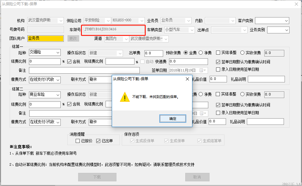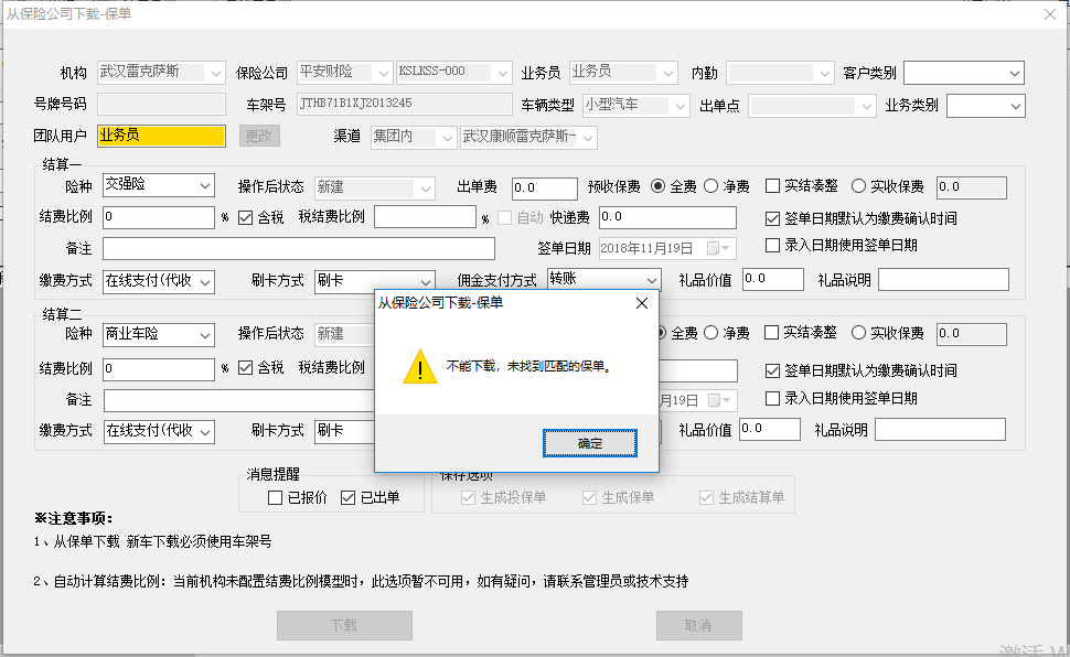 在平安系统内存在的保单,易保通内“从保险公司下载保单”时显示“无法下载,未找到匹配的保单”,详情如图。