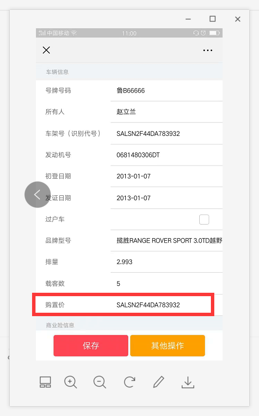 【信通车友】车辆管理,车辆的购置价显示的车架号