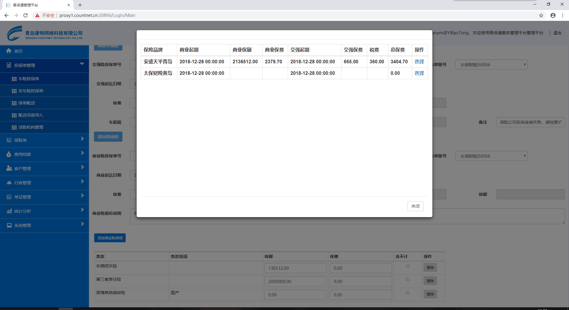 投保单编辑页面,多条报价历史之间已能够选择切换
