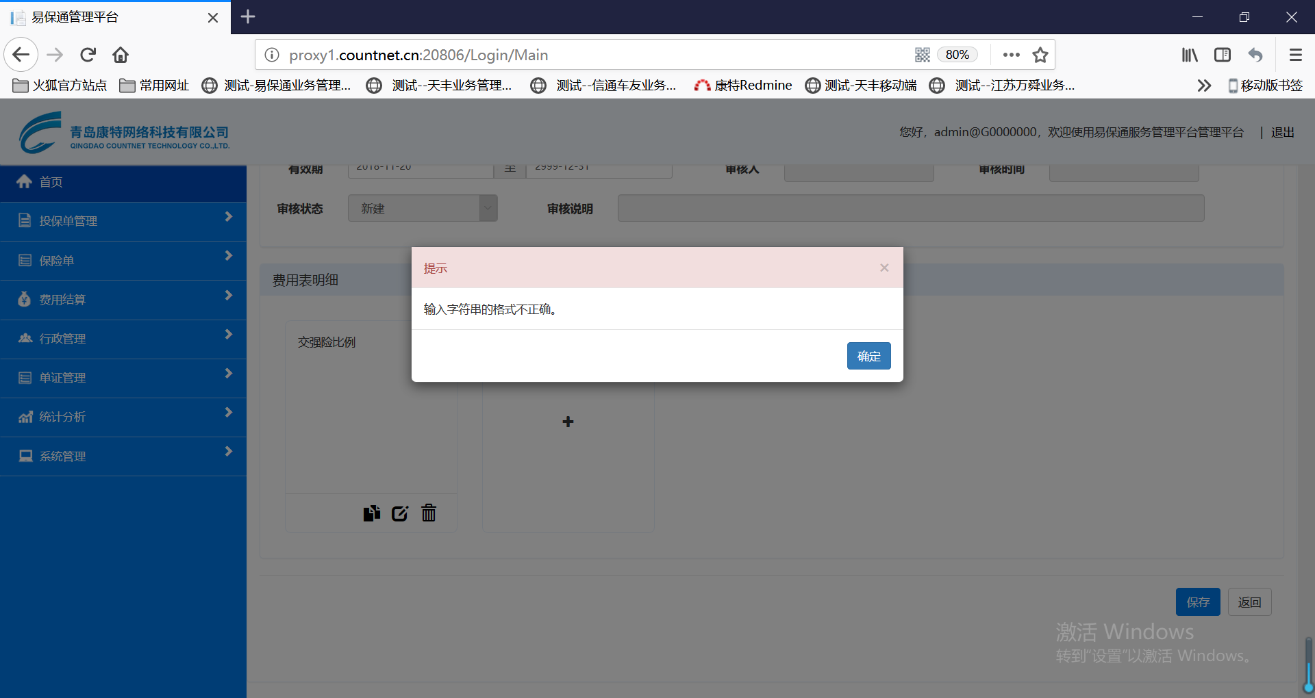 更改费用表的操作项,保存费用表时,会如图提示无法保存