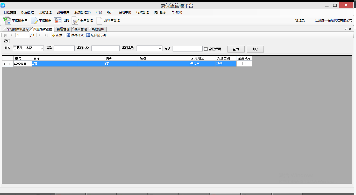 【江苏统一】新建的渠道添加保单时渠道显示栏中未显示