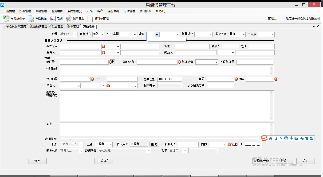 对于非车险业务,有些直接从保险公司的平台出单,有些业务会从一些平台上出,这时客户需要对平台上的业务在导入时根据渠道进行区分。