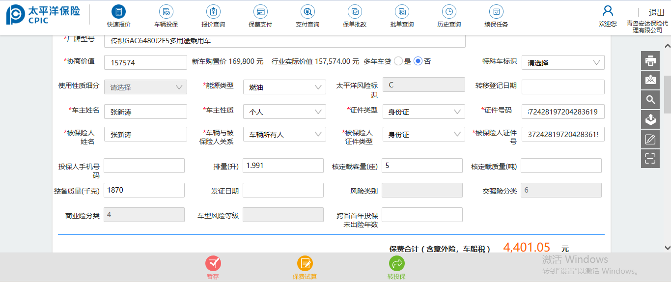 【青岛安达】保险公司可以报价,微信端报价提示“未将对象引用设置到对象的实例”