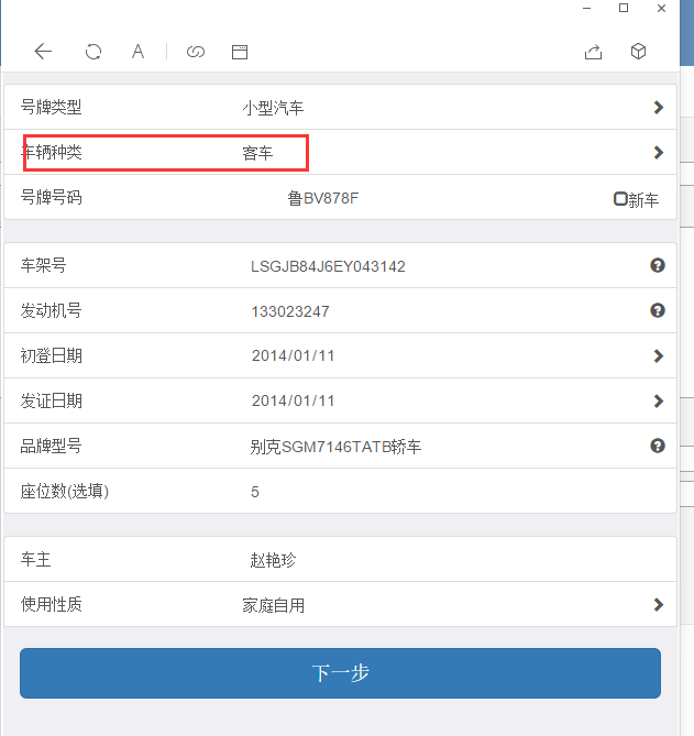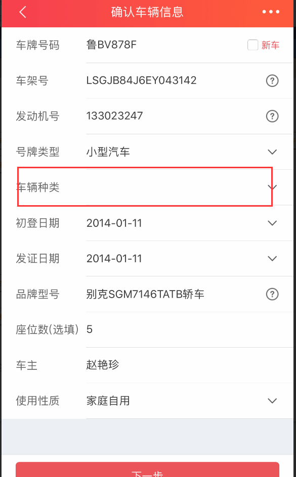 车辆信息完整,但却要提示完善信息,确认车辆信息界面车辆种类为空测试车辆:鲁BV878F