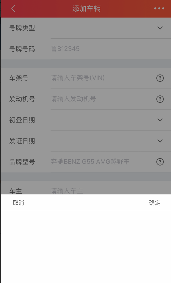【信通车友】车辆管理,添加车辆界面,号牌类型为空不可选择