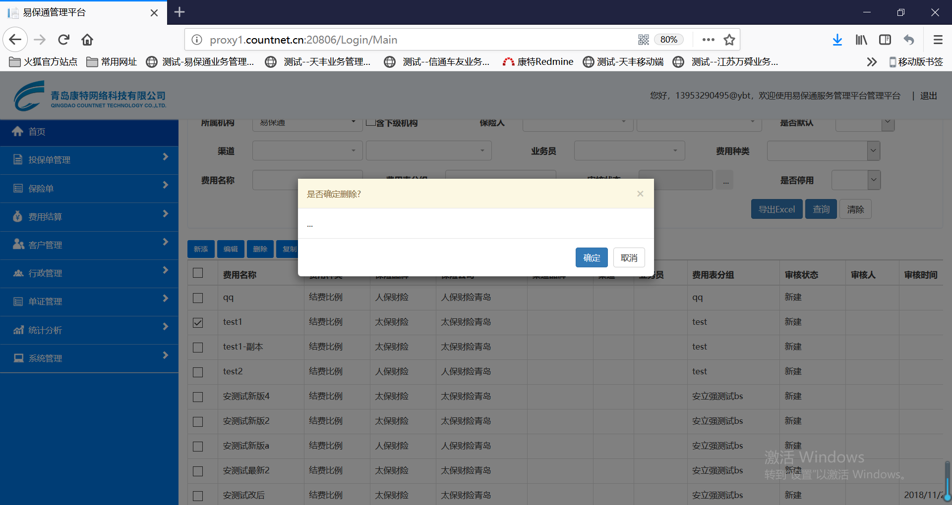 1. 提示见附图2. 选中费用表点击删除,点击确定后,费用表没有删除
