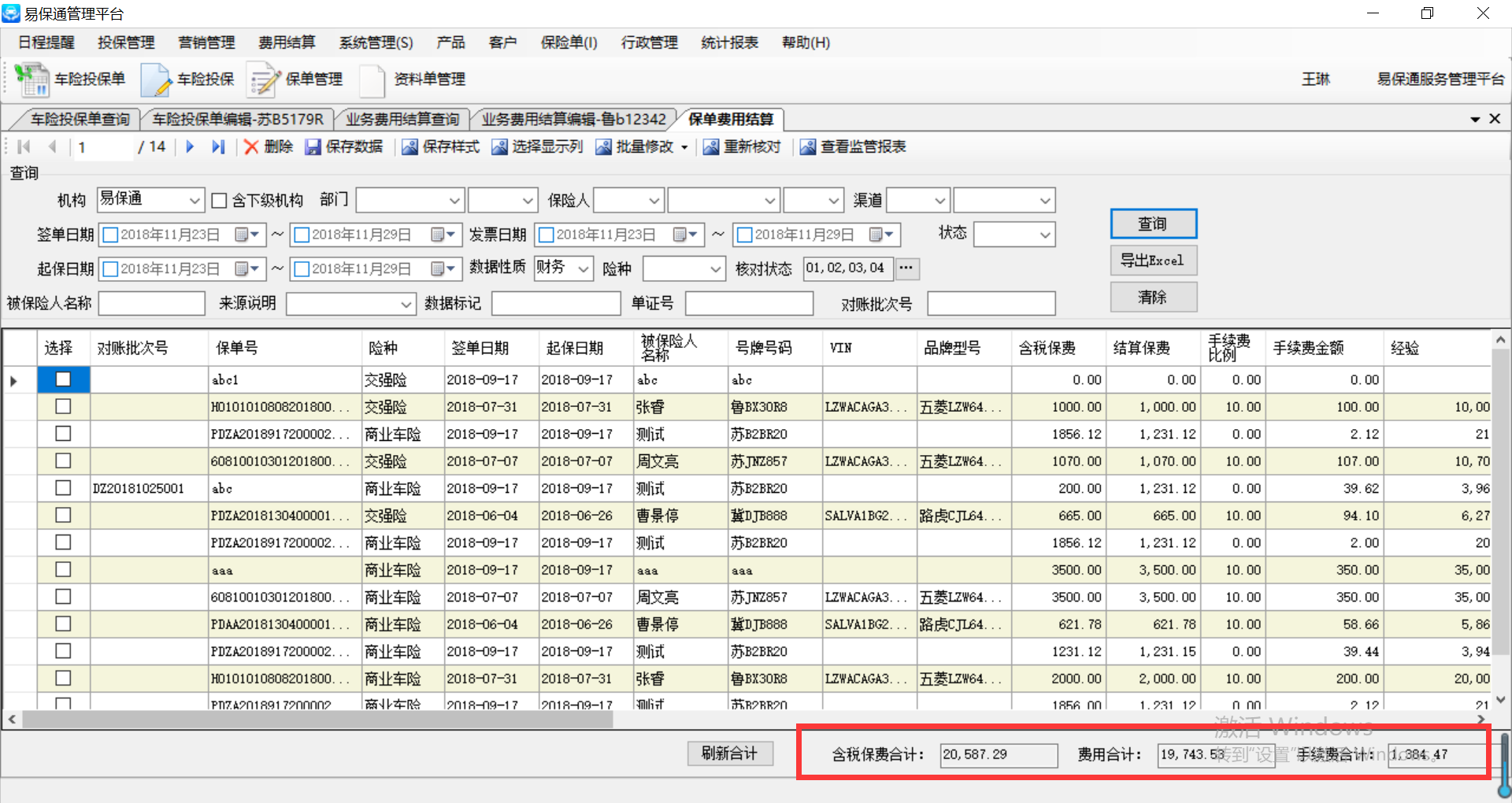 【速成高级版】保单费用结算,底部费用合计金额需要保留2位小数,见cs附图