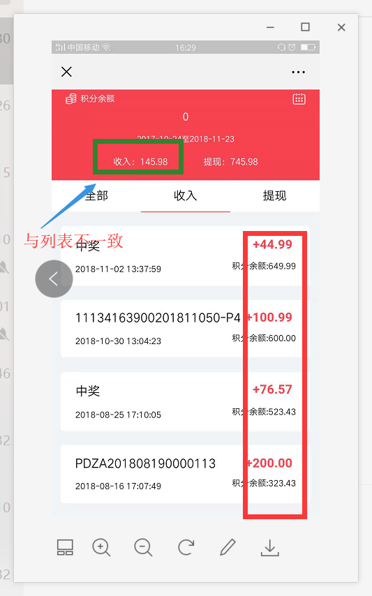 收入金额应该显示的是列表中累加金额