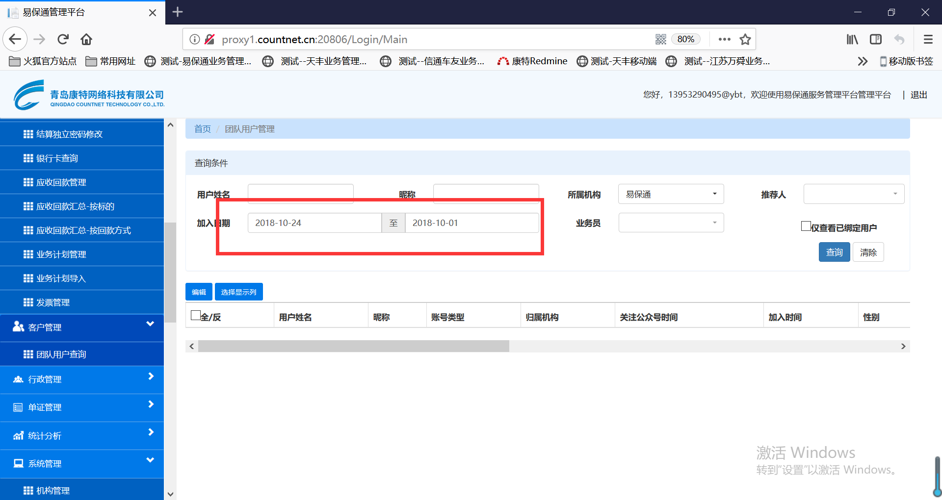 【速成高级版】团队用户管理,查询页面加入日期没有做限制