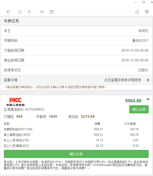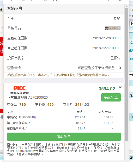 【安达】人保,在微信报价成功后保险公司内无响应暂存单