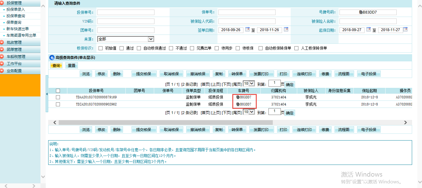 在人保系统内报价成功点保存后,可查询到暂存单。
