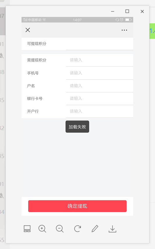 【信通车友】积分提现,用户登录后,如果没有提现信息,提示加载失败
