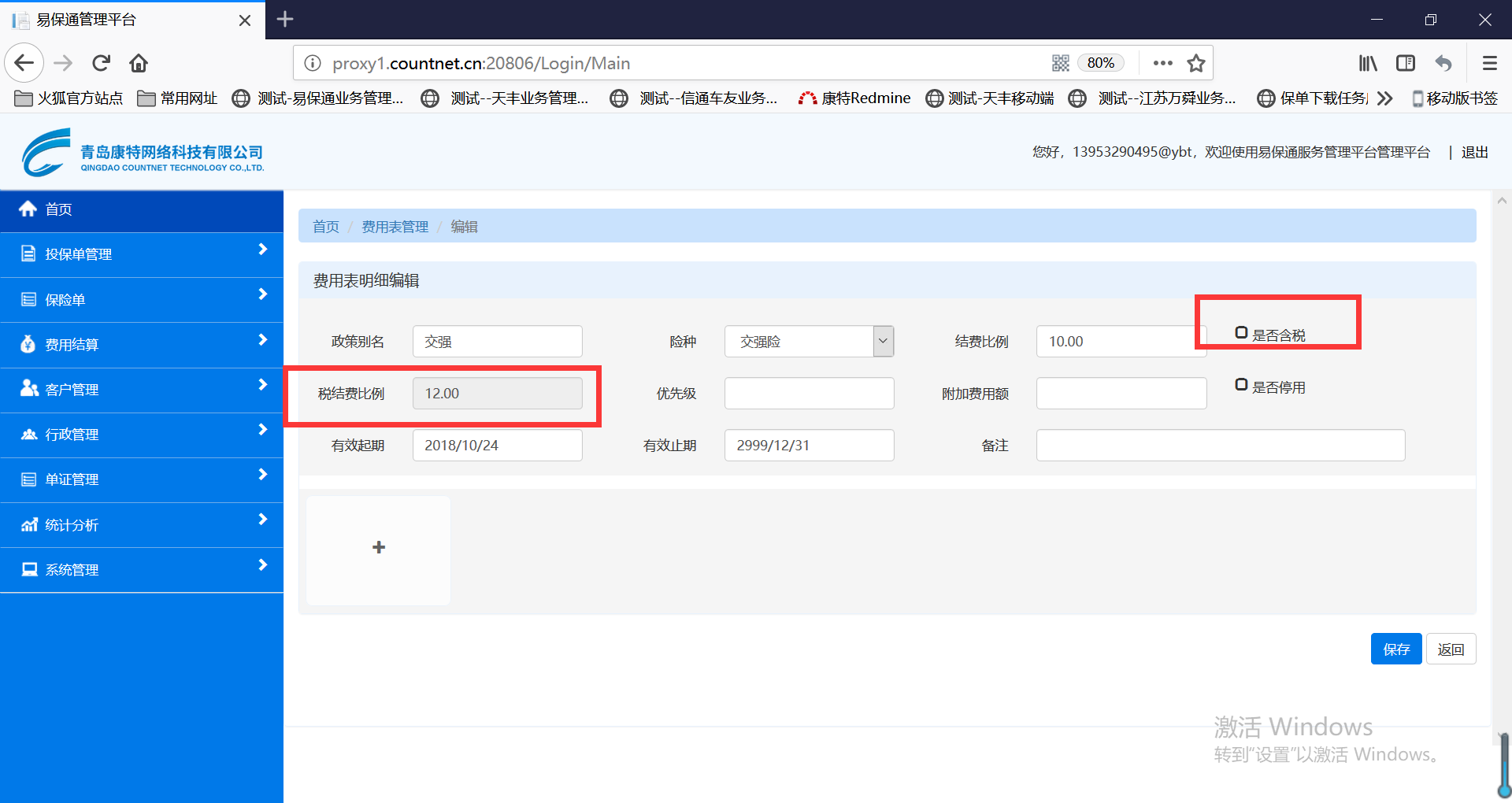 cs中的费用表。在bs中显示问题:若费用表有税结费比例,bs展示时需要选中是否含税复选框