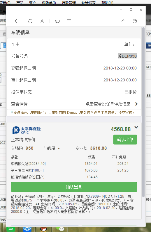 【万舜】老太保报价玻璃险时,微信报价结果与太保系统不一致。