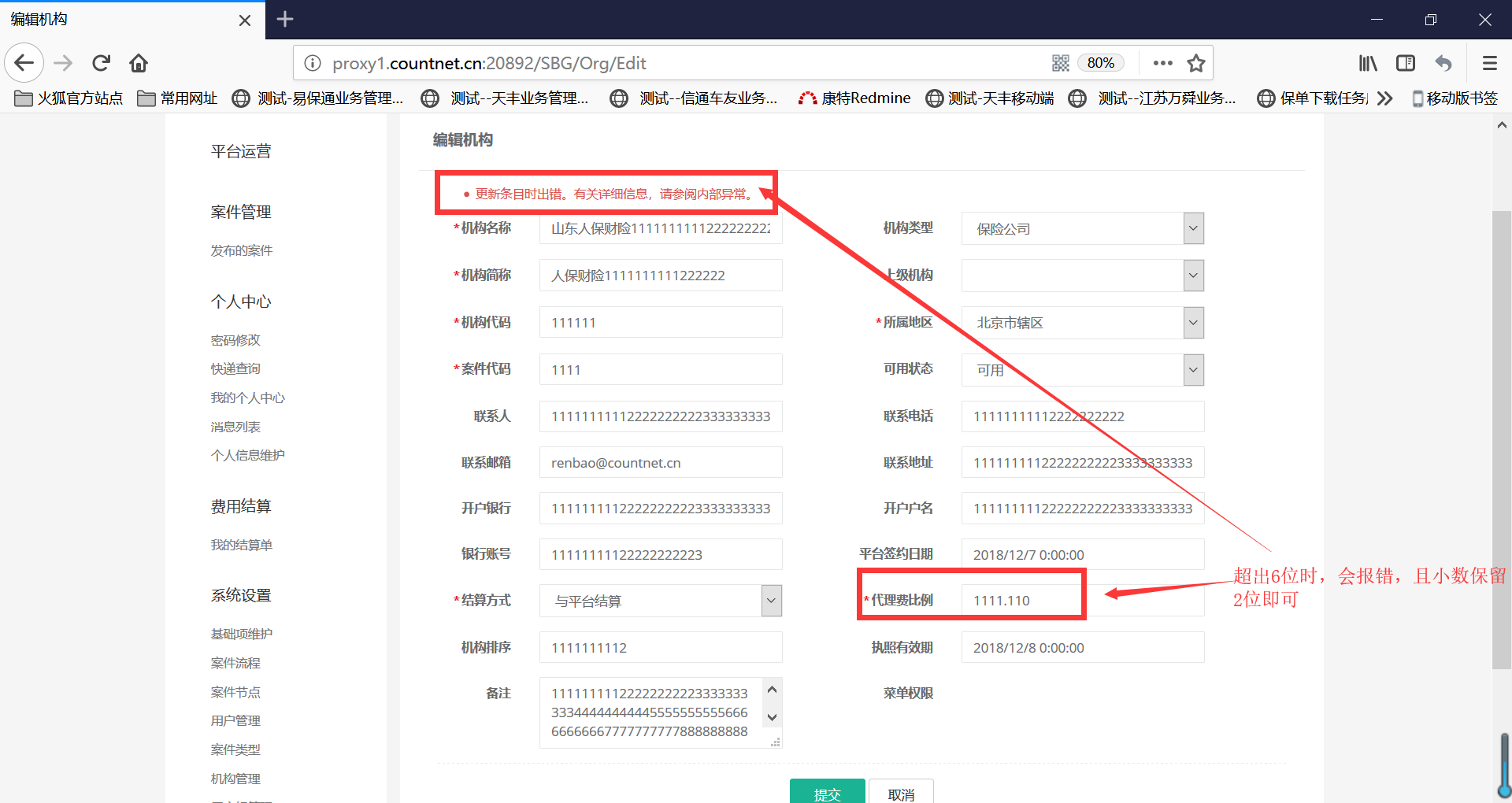 2. 代理费比例超出6位时报错,需要控制代理费比例长度及小数点格式