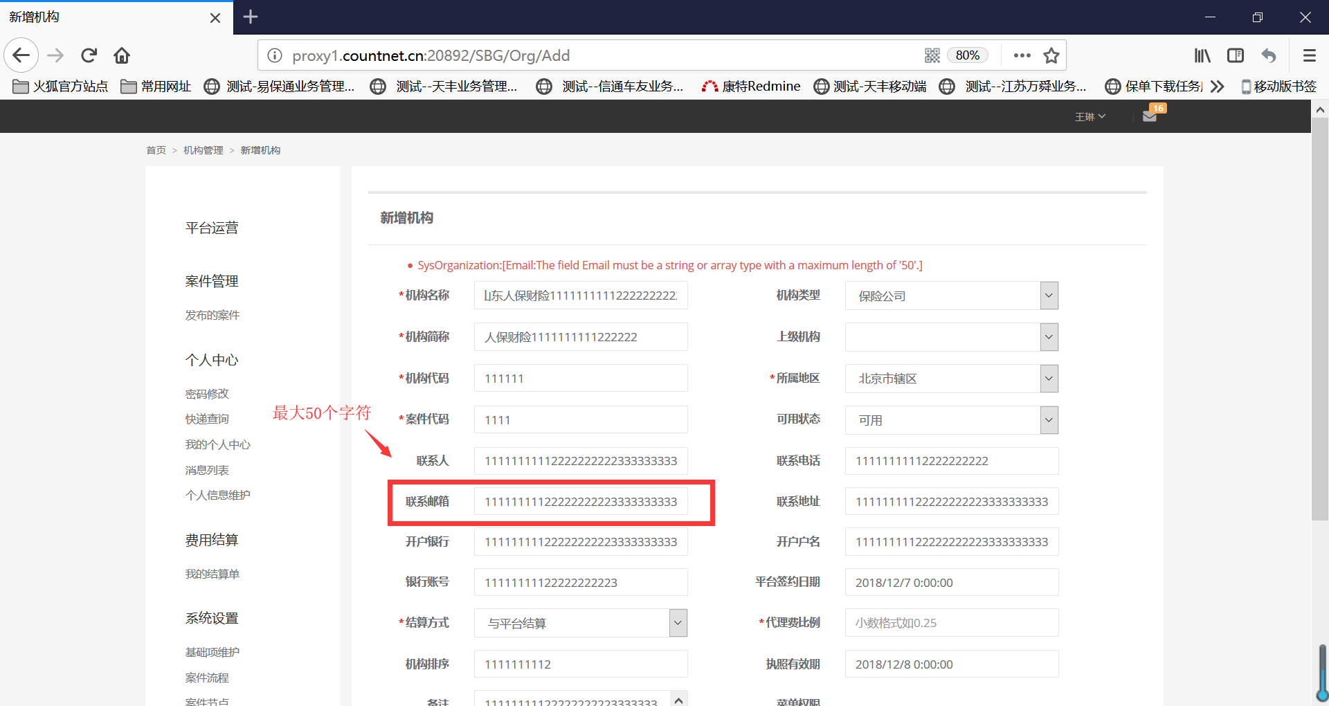 1. 邮箱超过50时,保存时的提示需修改,且控制邮箱长度不允许超过50个字符
