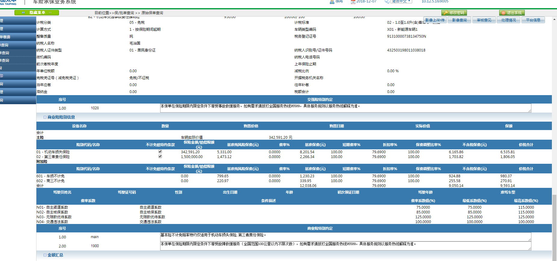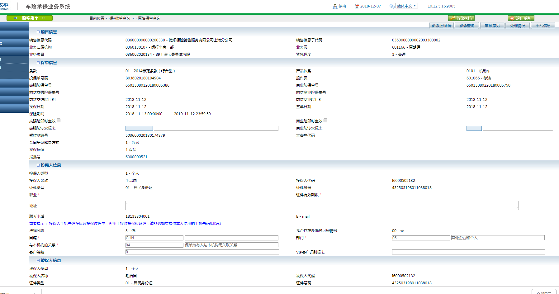 保险公司系统中是存在此保单信息的,且保单详情中信息齐全。