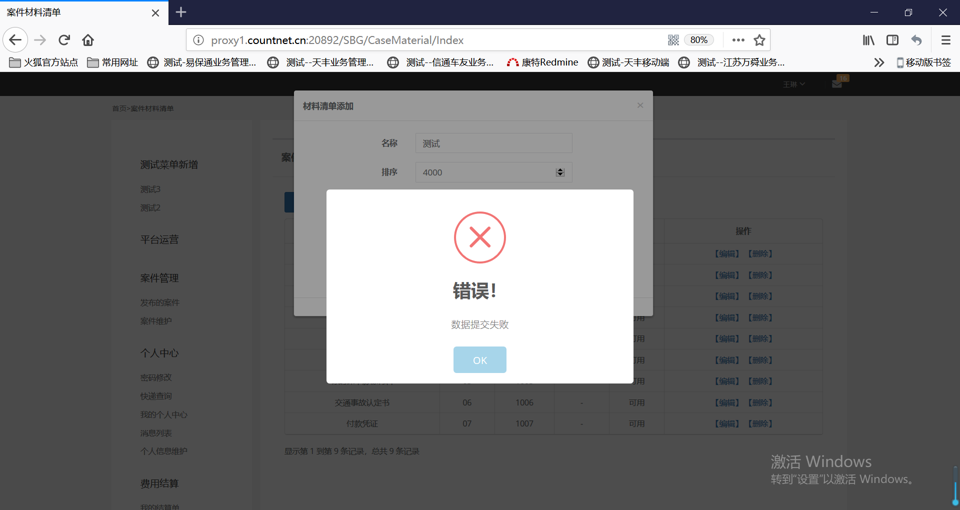 【案件材料清单】保存清单时报错,见附图