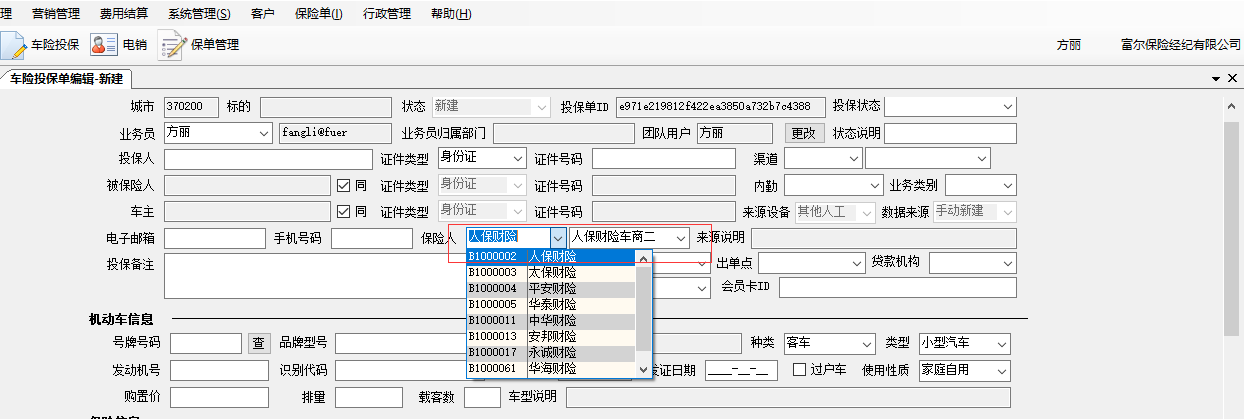 错误 #6693: 【保险品牌】新建投保单,无法选择保险品牌