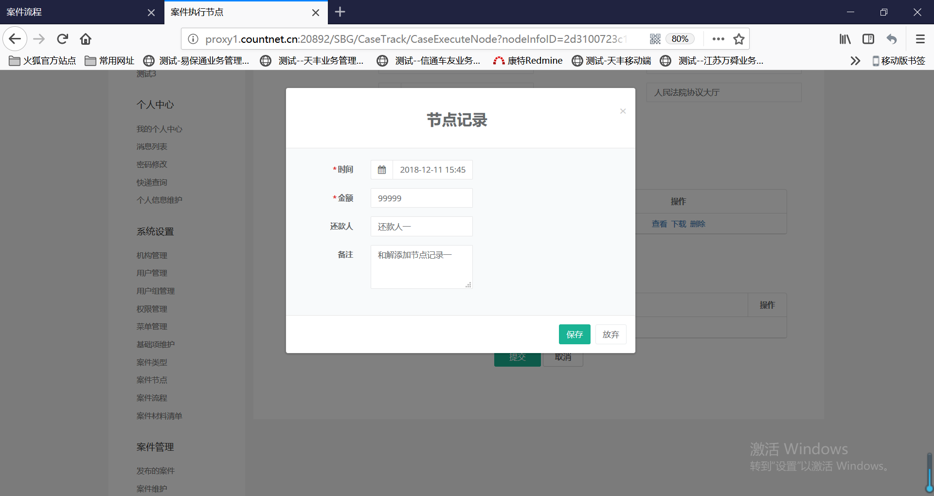 【案件维护】节点记录删除后,再次添加仍然显示之前的记录,点击保存报错