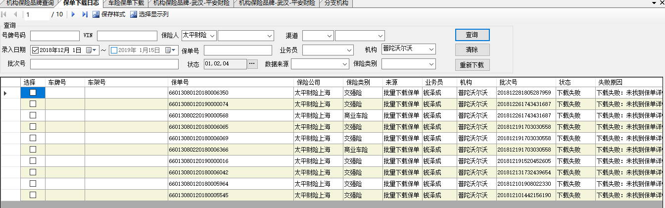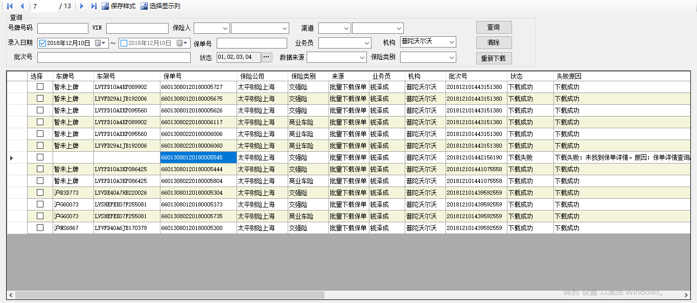【捷顺】普陀普陀沃尔沃,保单批量下载失败。