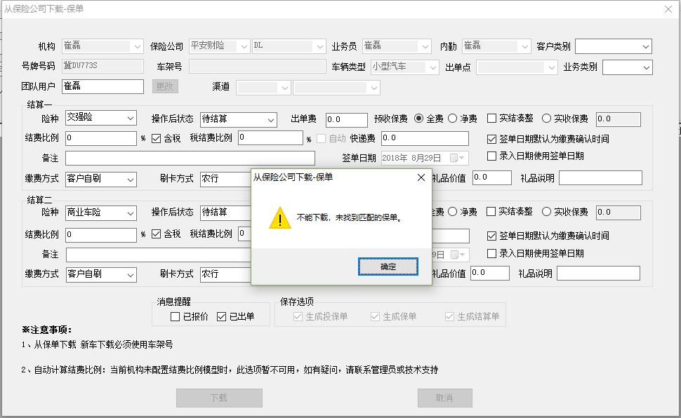 无法下载已承保状态的保单 测试车辆:冀DU773S