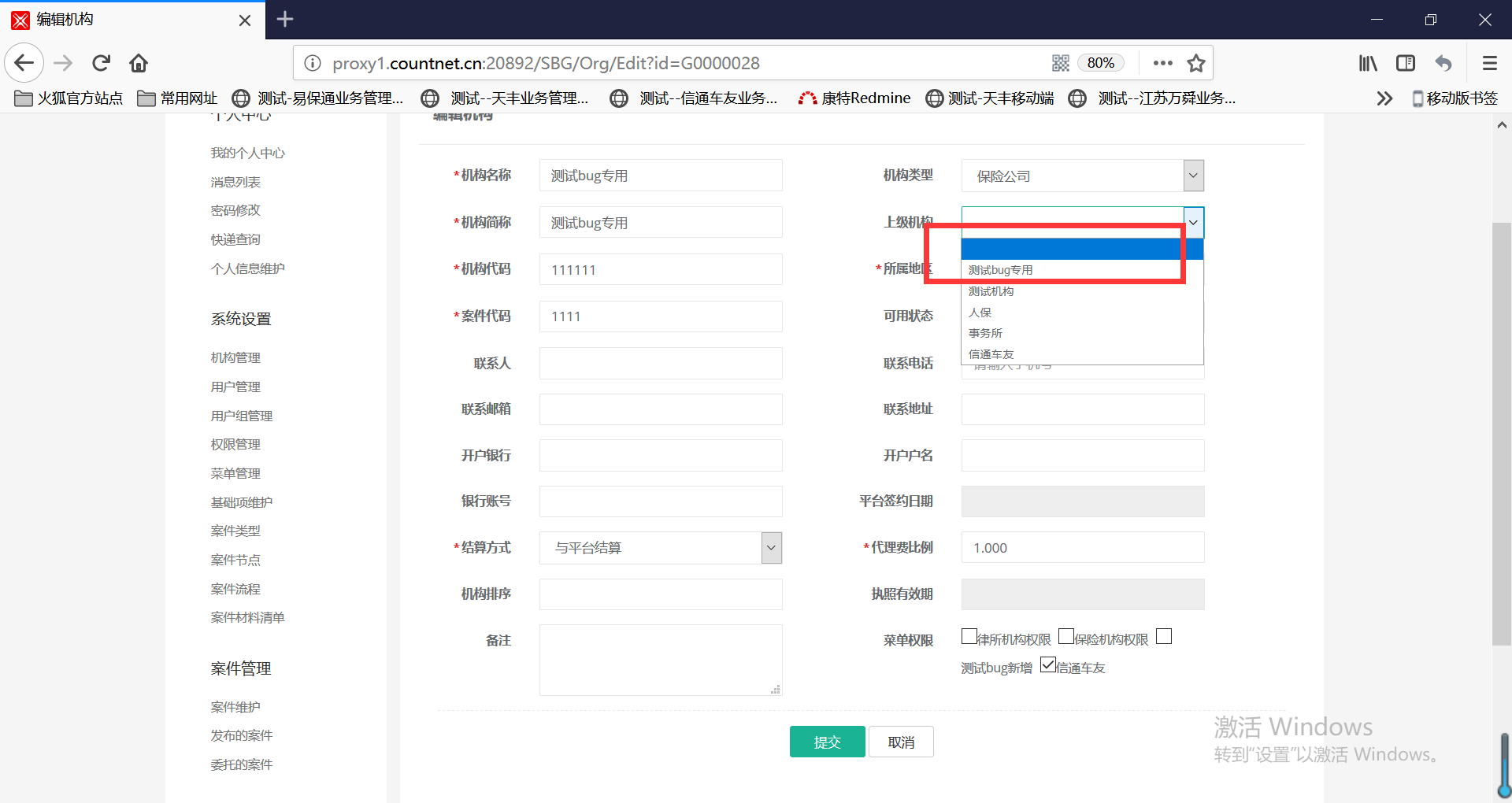 【机构管理】编辑机构时,上级机构列表不应该显示当前机构