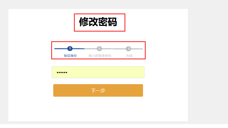 1.这个红框内的图片太模糊,要清晰一点2.文字提示,产品图是“修改登录密码”3.如果密码错误,点击下一步无反应,建议给出错误提示