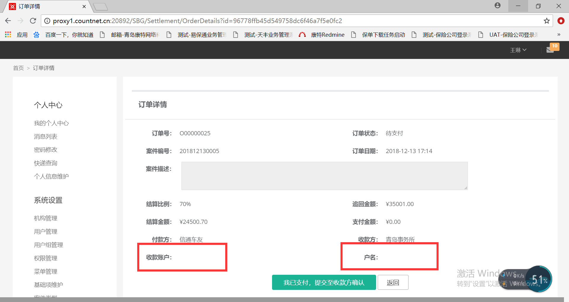 【我的结算单】付款方为平台的订单详情,部分信息未显示