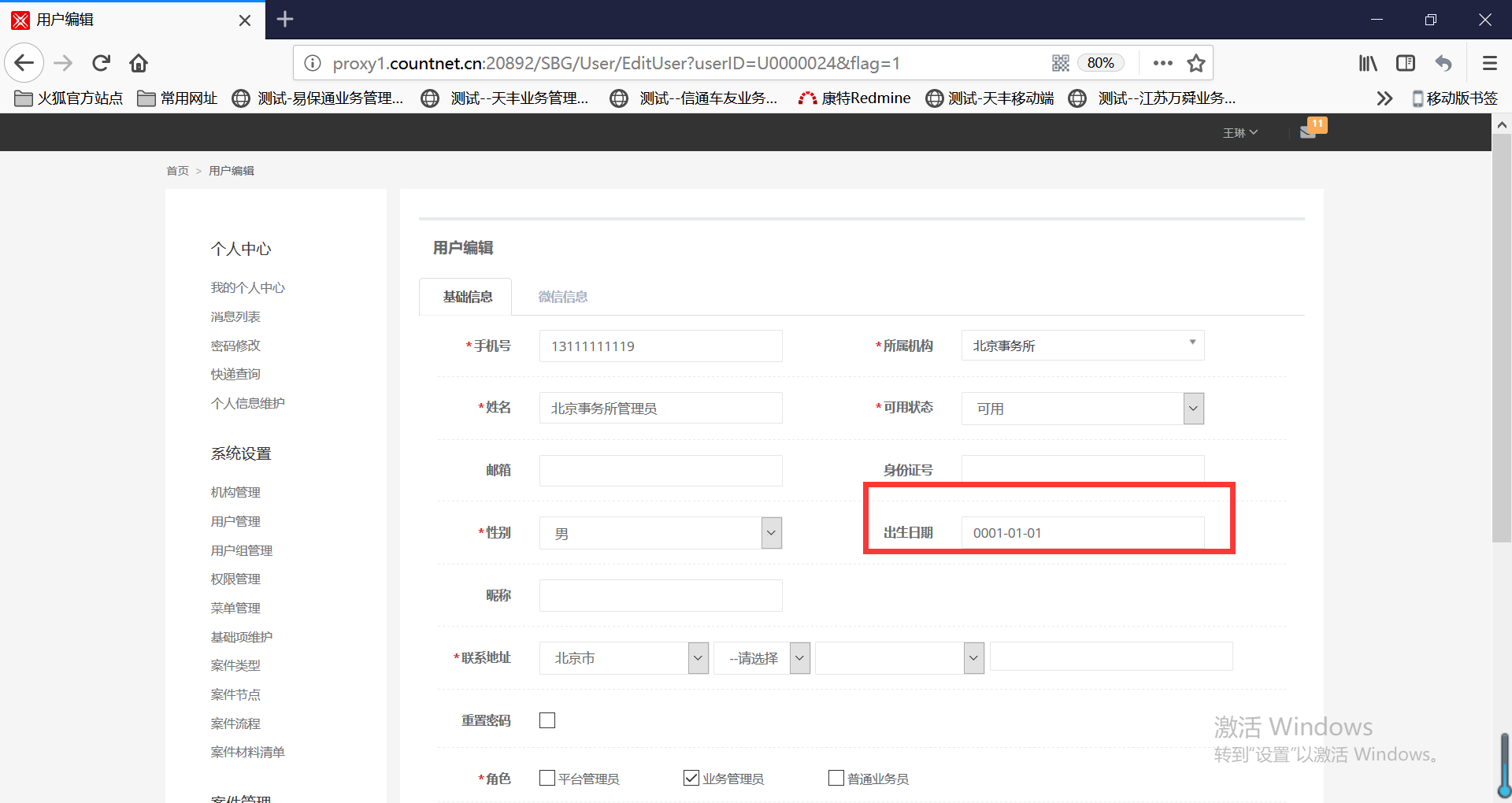 【用户管理】出生日期没填写,保存后查看用户,出生日期自动填入值,见附图