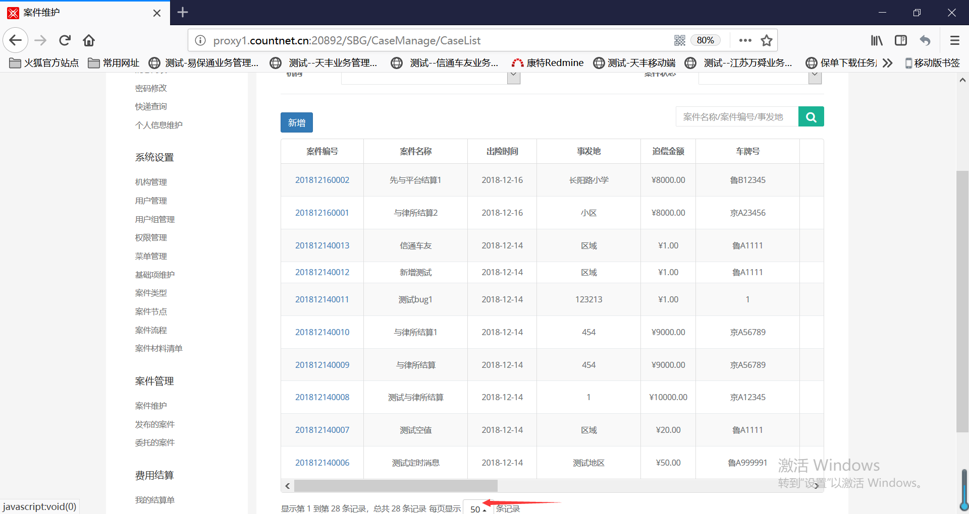 【委托的案件】列表页数选择50条时,案件不能全部显示出来,见附图