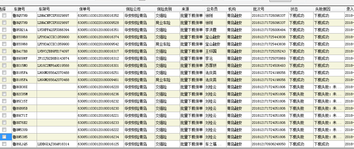 【融安】华安批量下载保单失败,提示下载失败:未找到保单详情。原因:保单详情查询出错:给定关键字不在字典中。