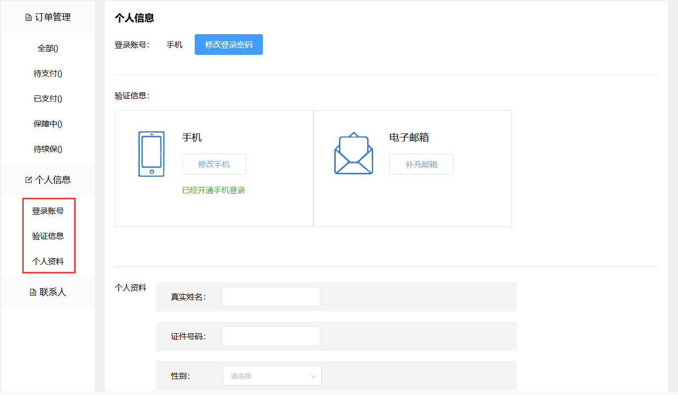 【鼎慧保】个人中心,左边导航栏点击应该要有跳转