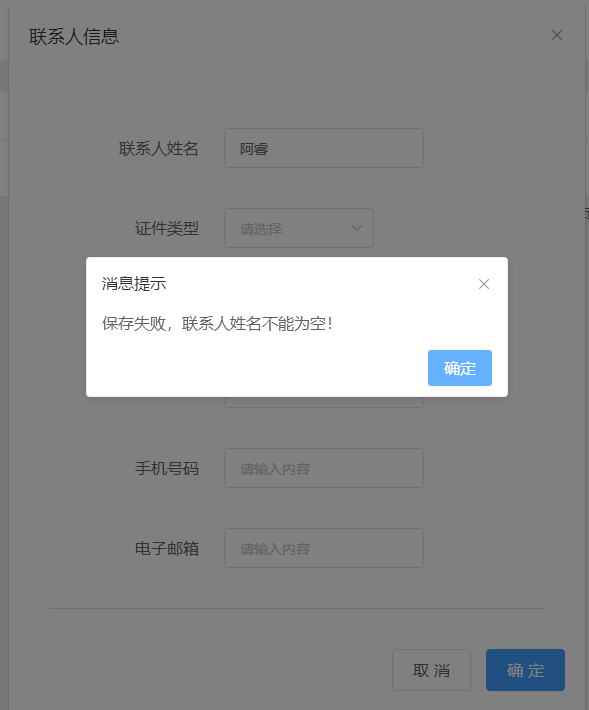 已填写联系人姓名,但显示姓名为空。之前做了姓名查询的操作,然后再查询的基础上新增