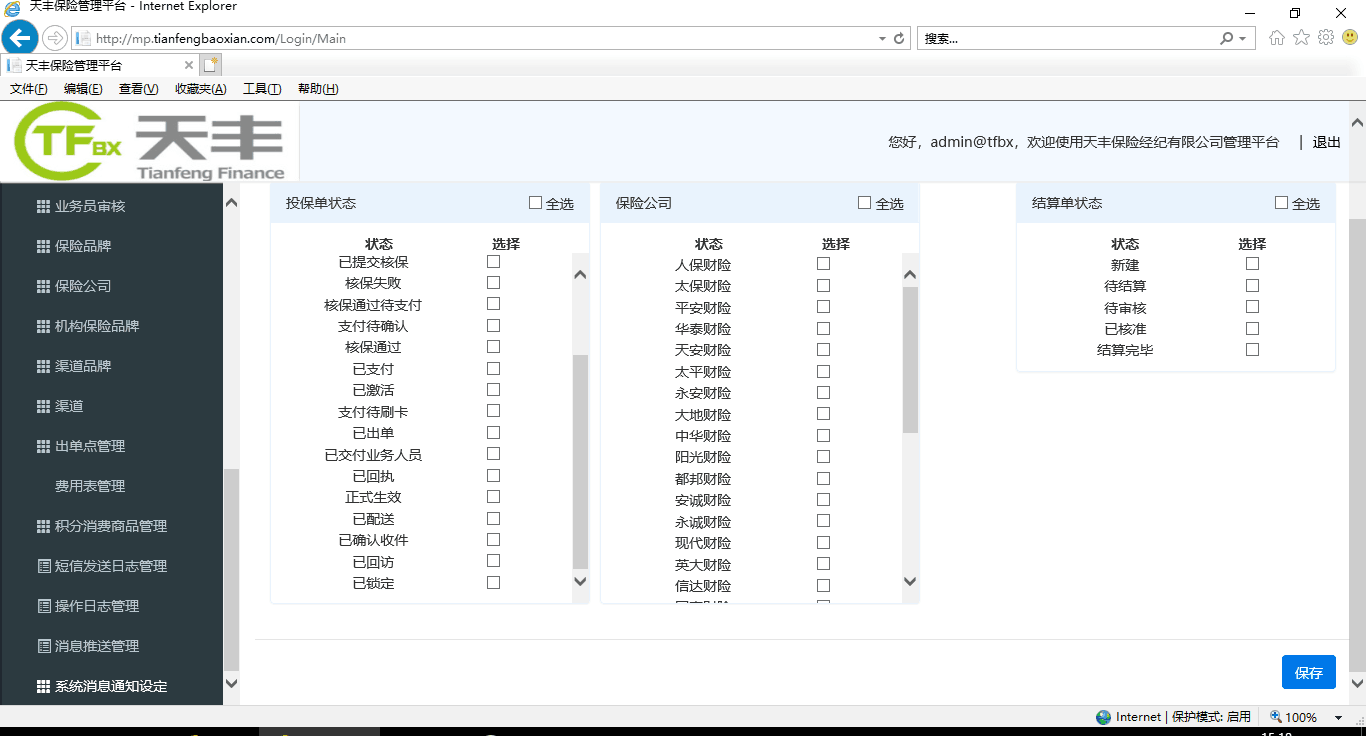 【天丰】系统管理-》系统消息通知设定 勾选指定的消息的后,再次进入该页面,没有展示已勾选的过的消息类型。
