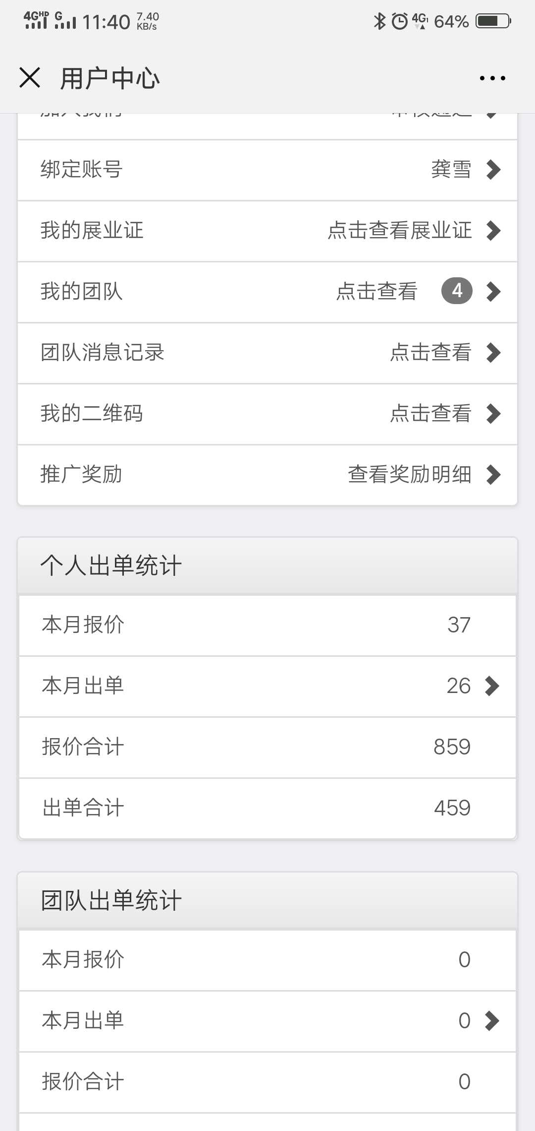 手机端无法显示出单明细。见附件,个人中心中出单明细为空。