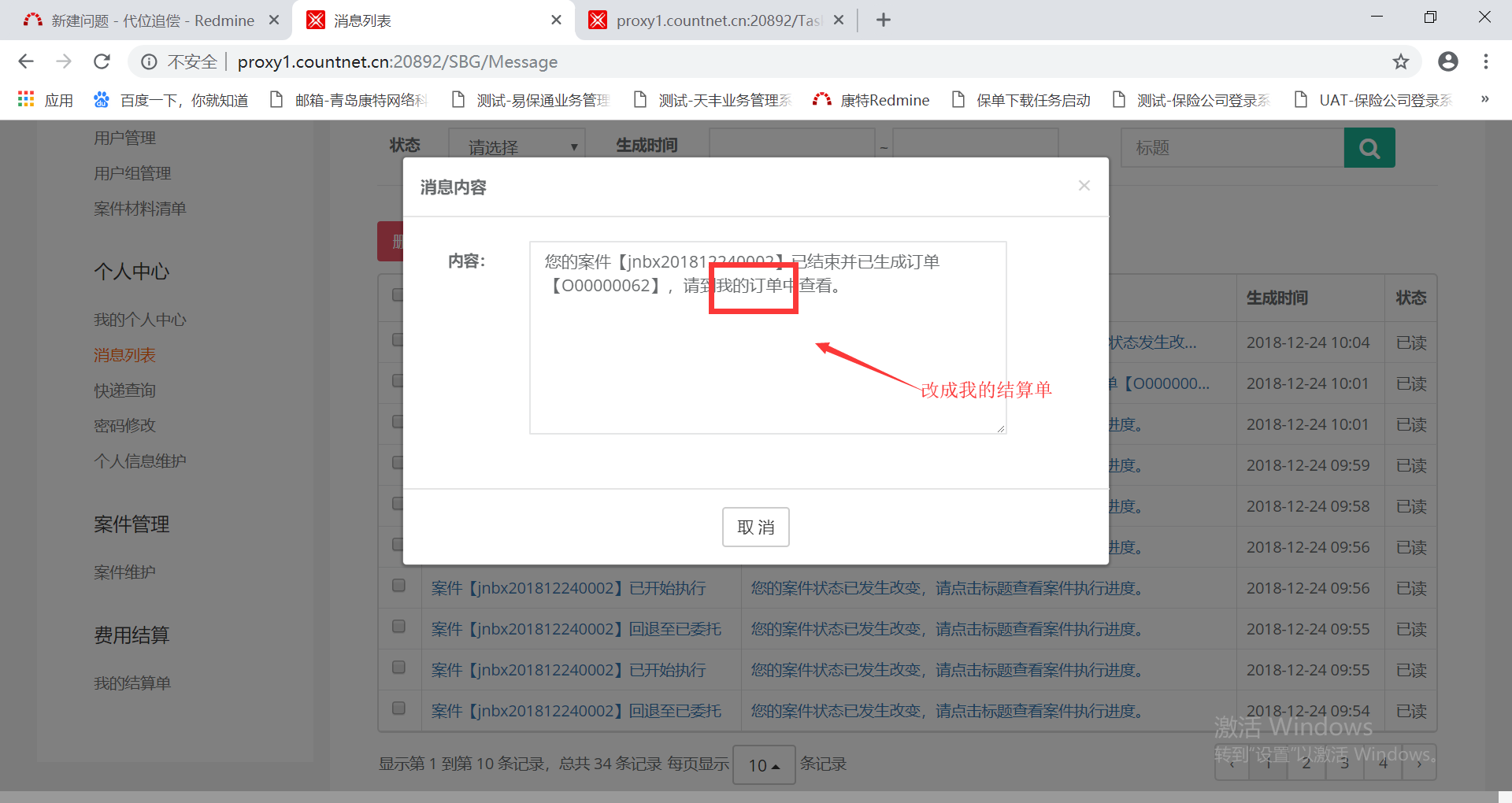 【消息列表】将消息内容中涉及到我的订单的,全部改成我的结算单