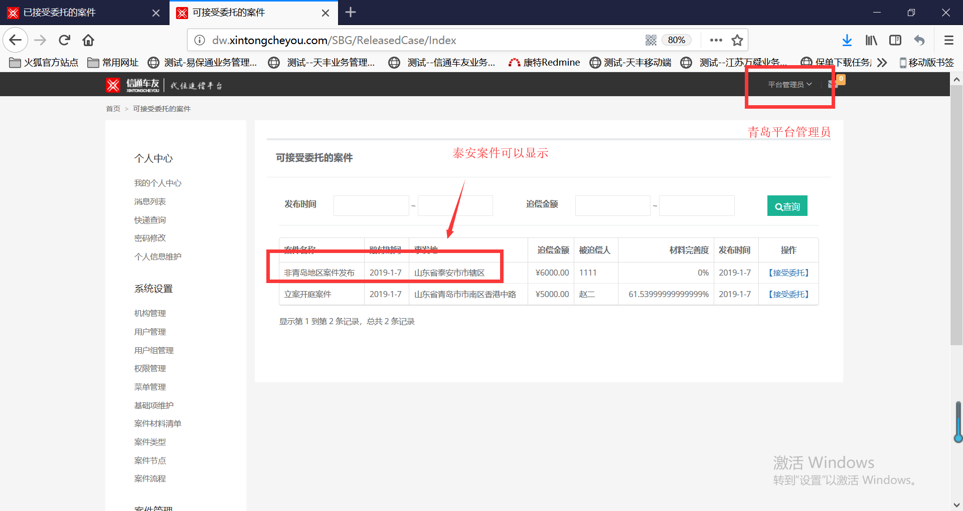 【发布的案件】建议平台管理员可以看到所有地区的发布案件