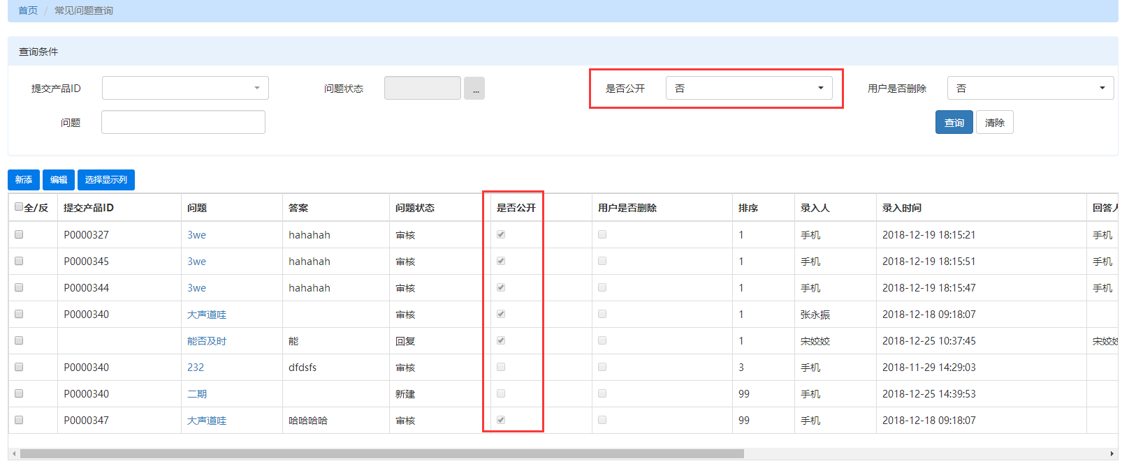 “是否公开”查询条件失效