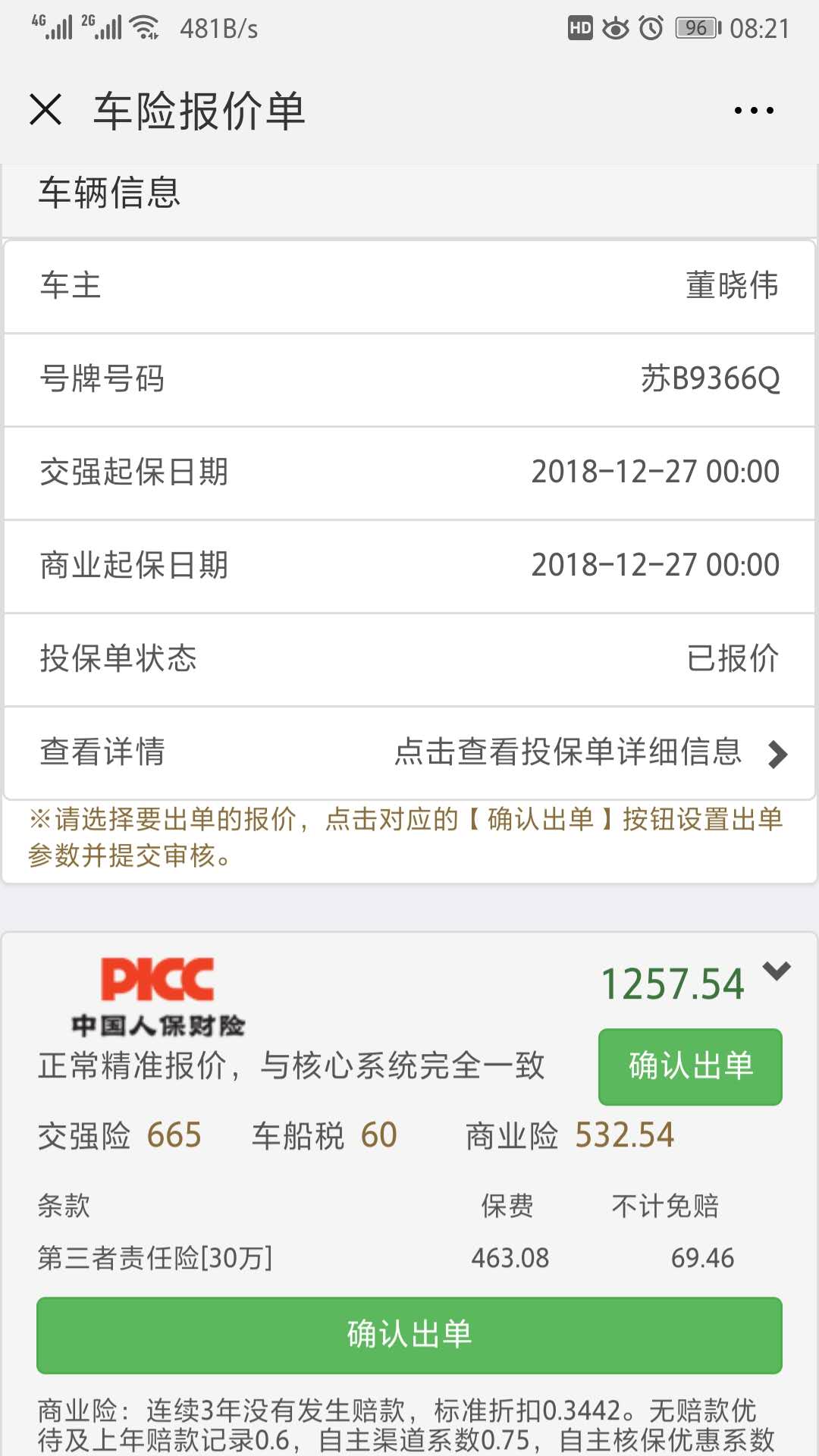 苏B9366Q微信端报价后在保险公司系统中暂存失败: