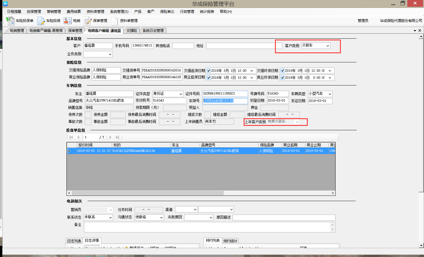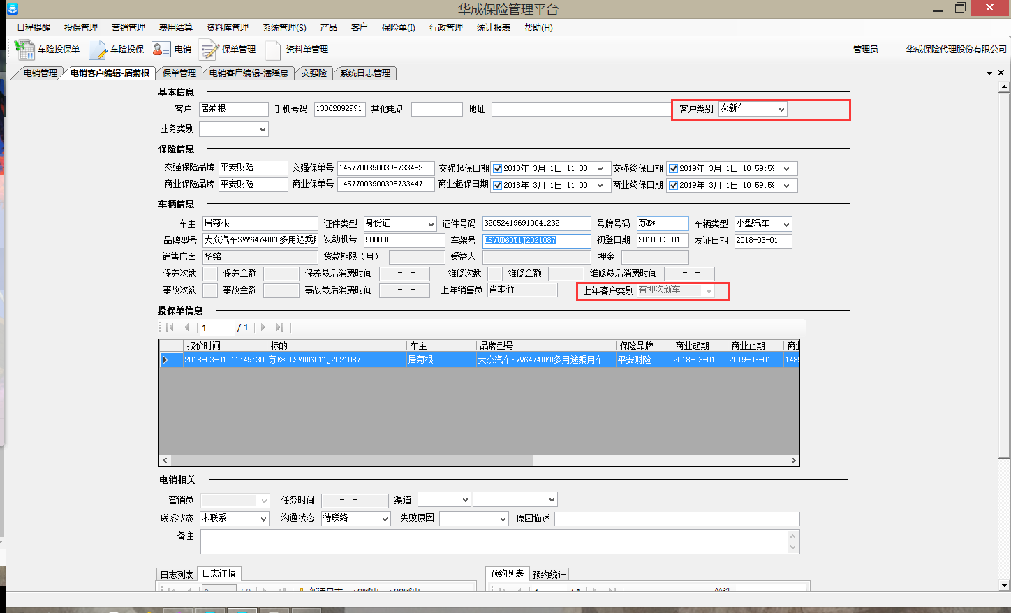 【苏州华成】未成交的电销名单复新时保险信息不能被清空,复新后的上年客户类别显示有误