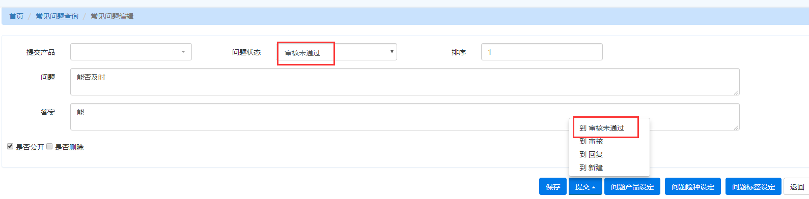 如果选择状态为审核未通过,提交按钮的下拉选择框会有“审核未通过”状态,应该去掉本身状态