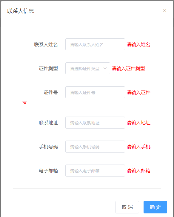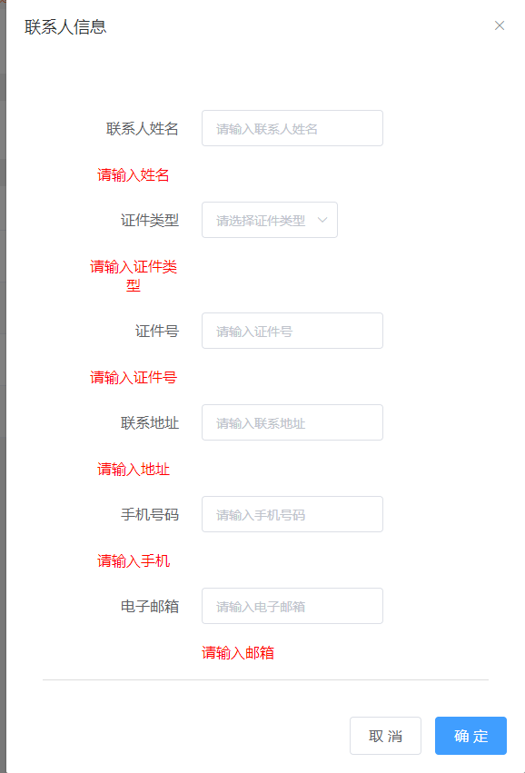 联系人新增界面,必填项未填的提示信息字体间距太多且位置不好,建议把位置改在每行输入栏下。如注册界面显示