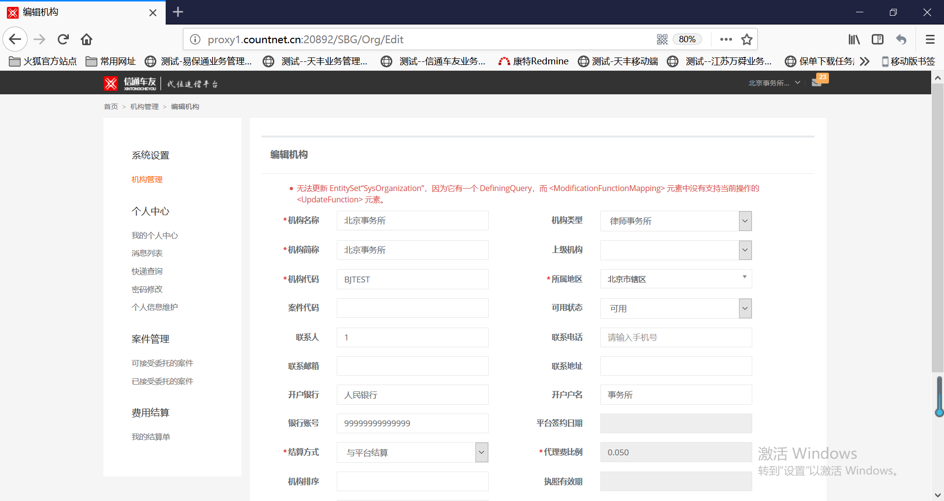 机构管理中,编辑某机构,不做任何更改,点提交报错