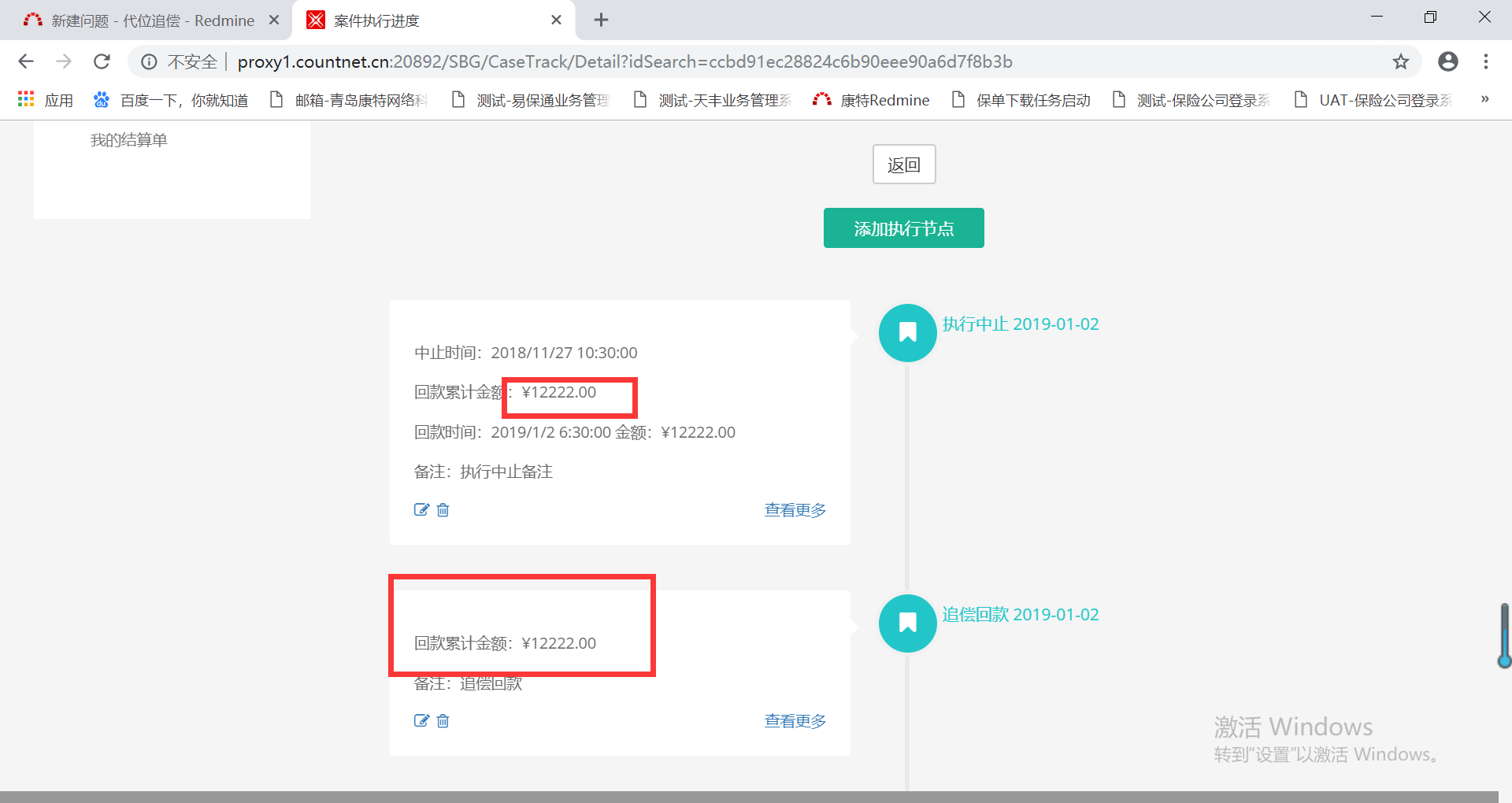 【案件流程】在申请执行流程中,添加追偿回款-执行中止时,回款累计金额问题,见描述