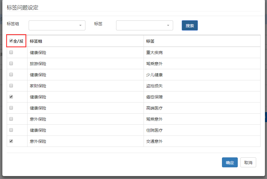 已经选择了标签后,勾选全选然后再点击搜索按钮,会出现如图所示情况