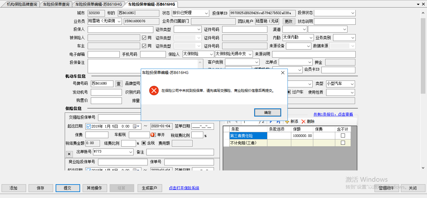 内容:在投保单编辑页面,投保单由待报价提交到已报价状态时异常,提示