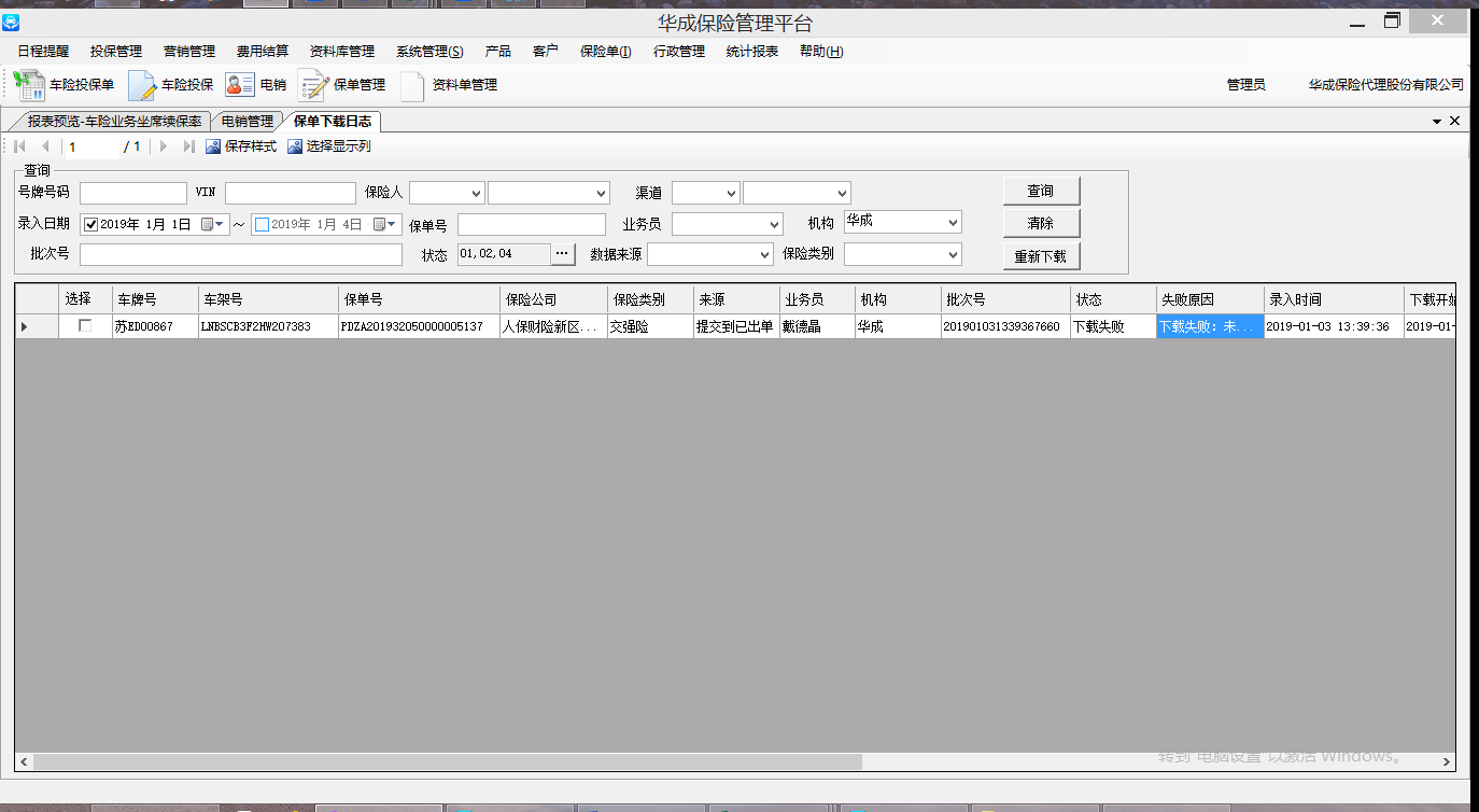 【苏州华成】人保财险下载保单时系统提示失败“下载失败:未找到保单详情。原因:保单详情查询出错:给定关键字不在字典中。”