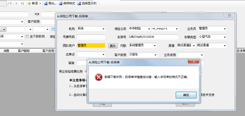 【华成】中华投保单下载时提示输入的字符串格式不正确。