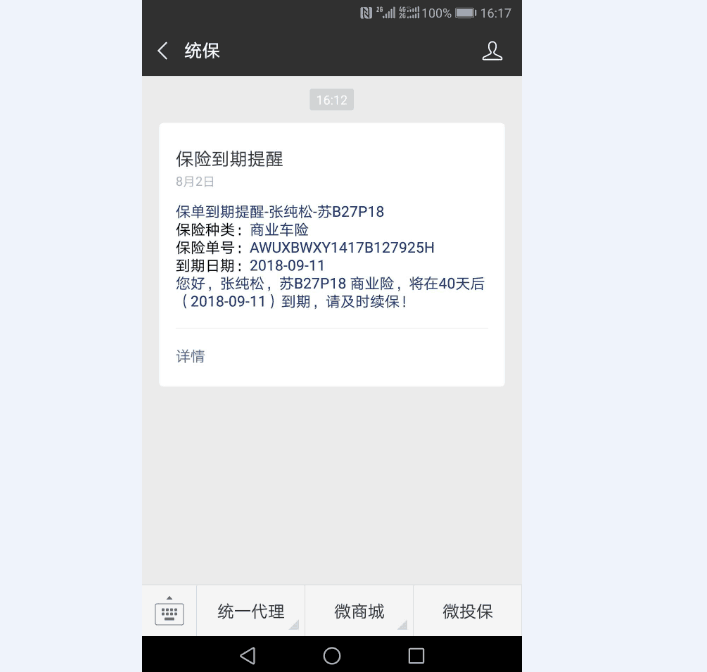 原理跟以前一样:从数据库查询数据时,当前时间+40天>终保日期,则推送消息